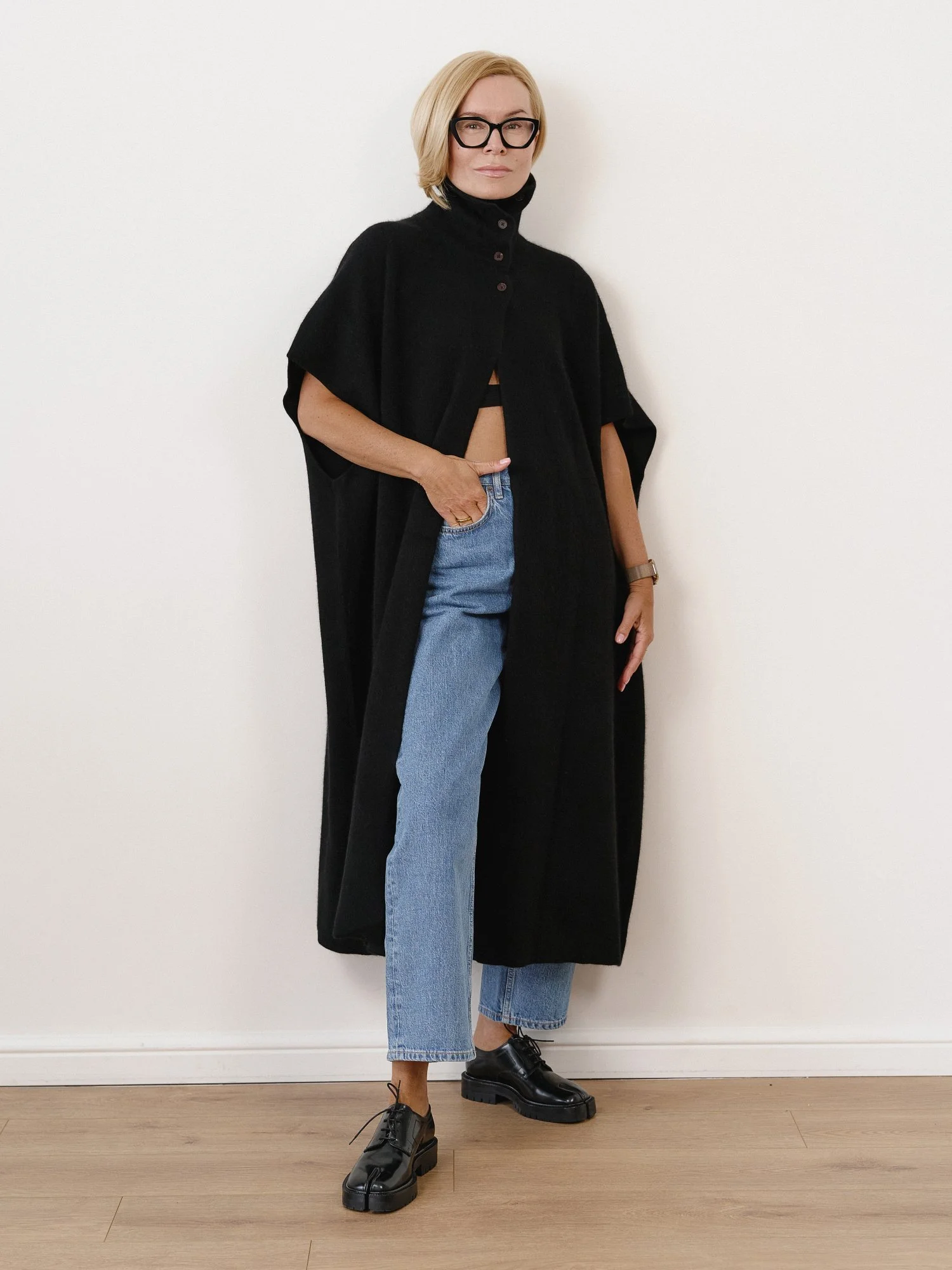 Рост модели 174 см , длина кейпа 122 см. Кейп подходит на размер 42-48