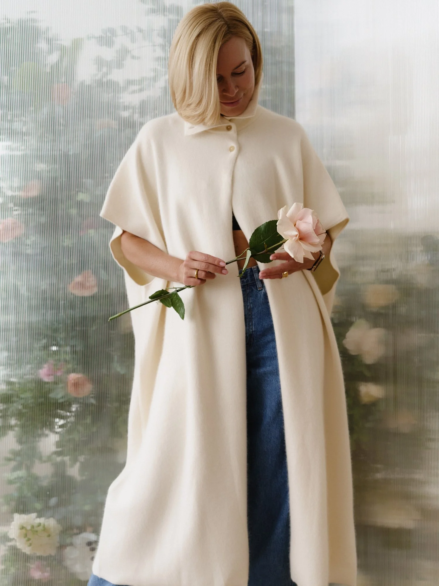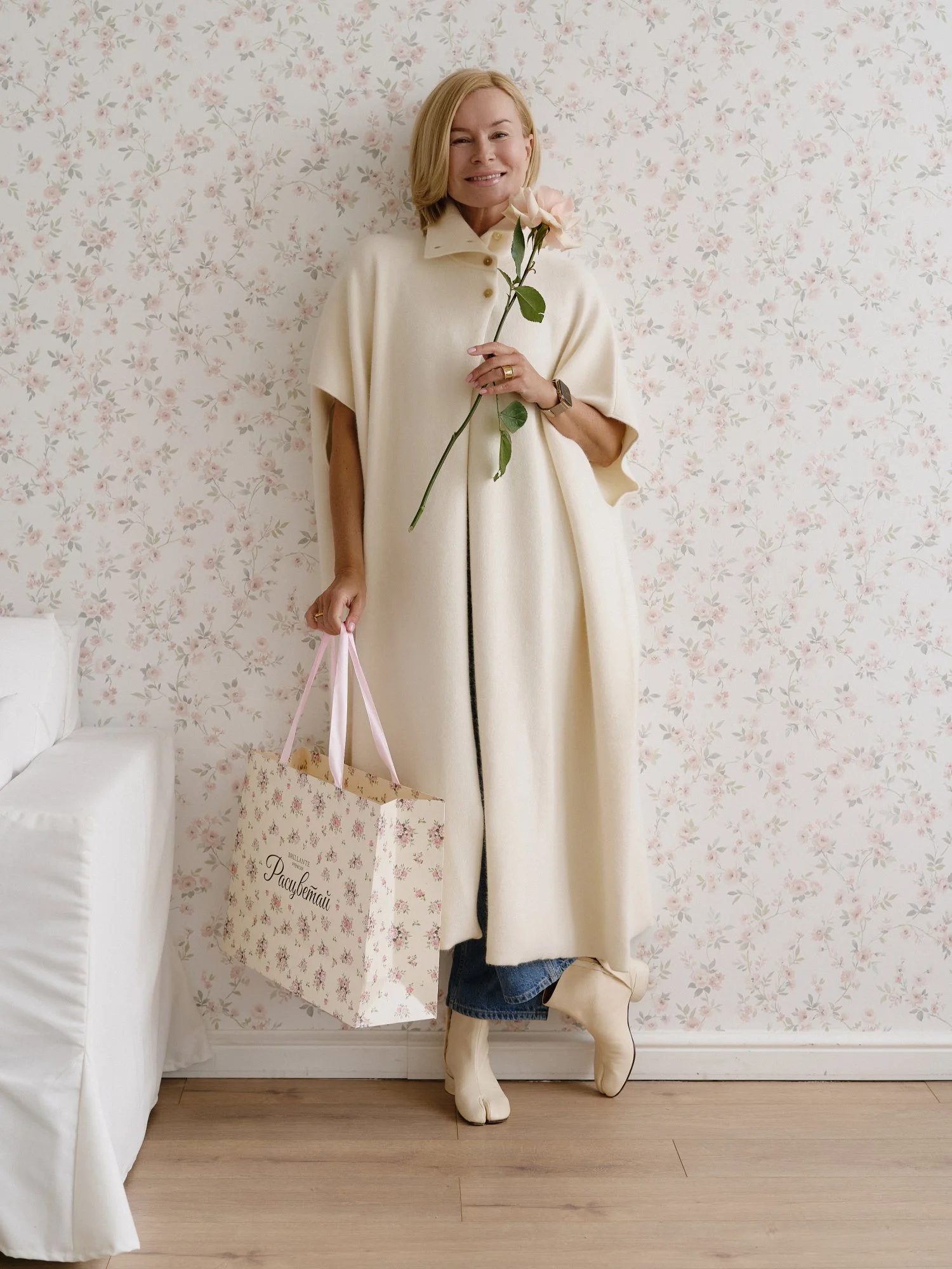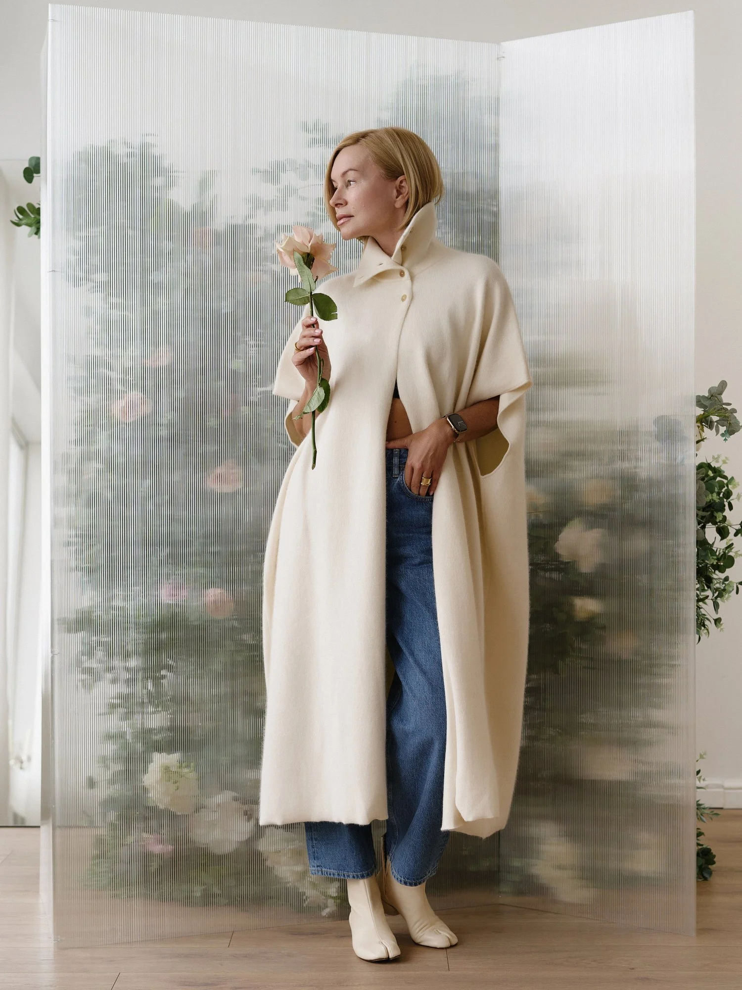 Рост модели 174 см , длина кейпа 122 см. Кейп подходит на размер 42-48