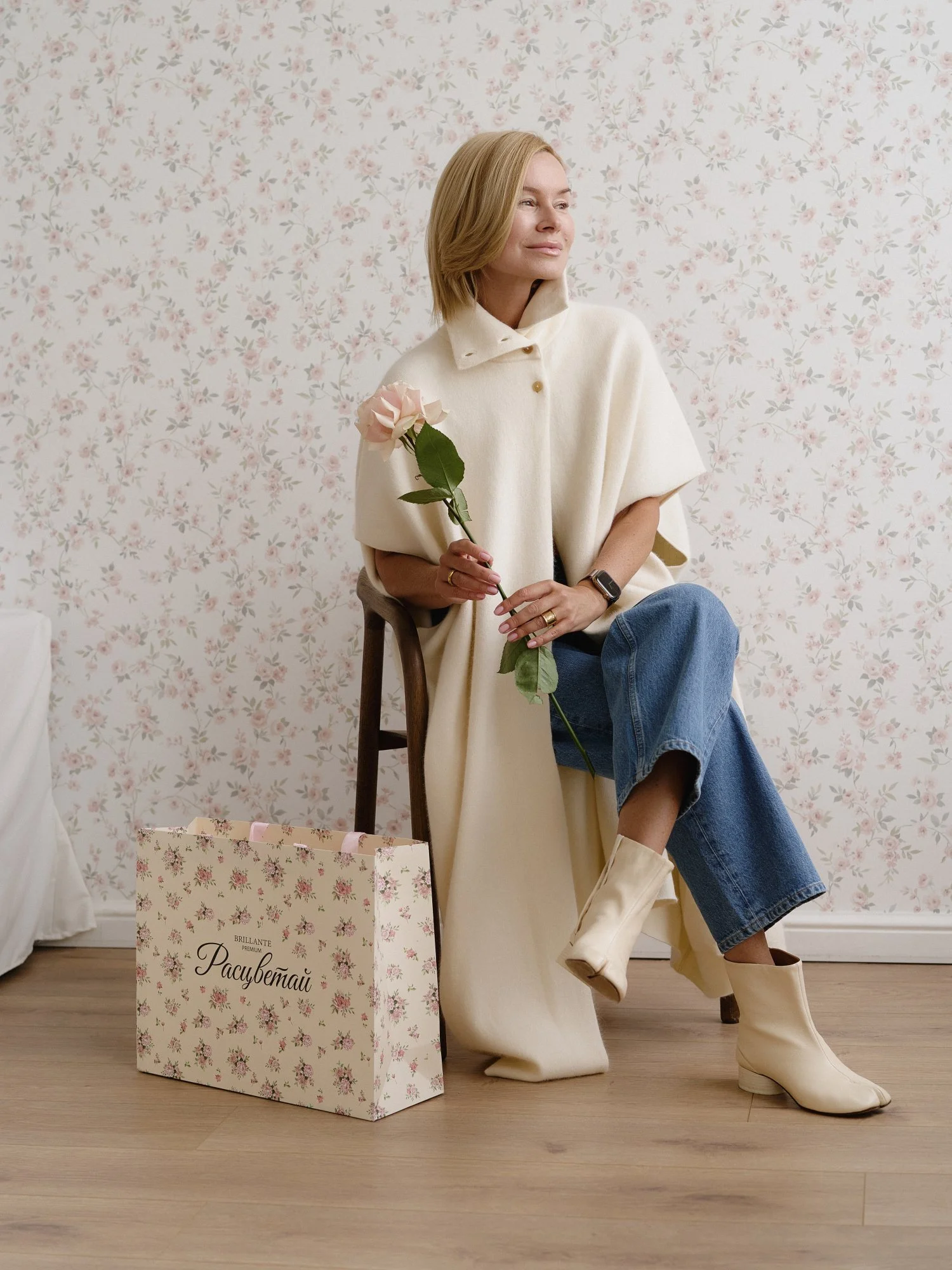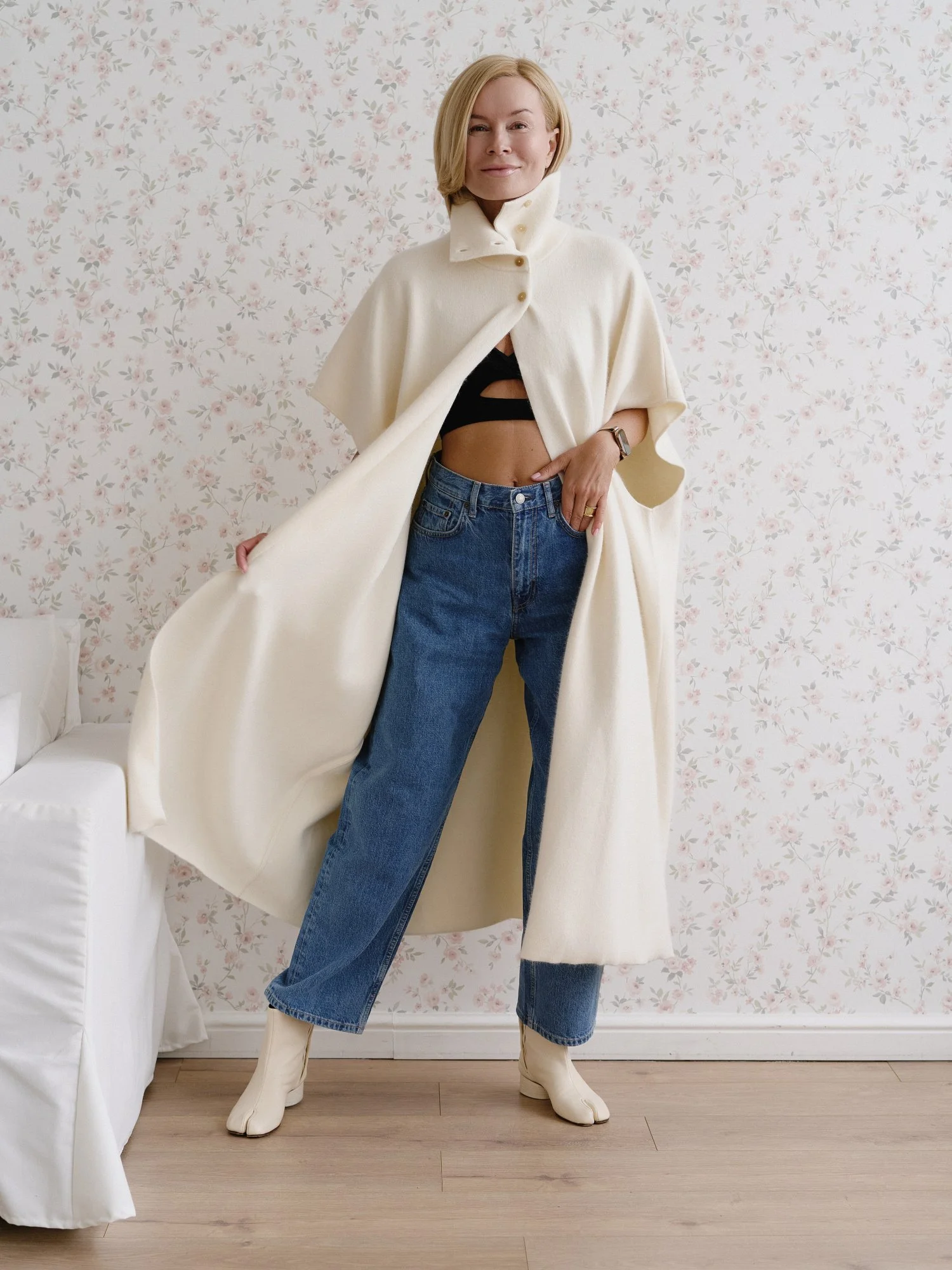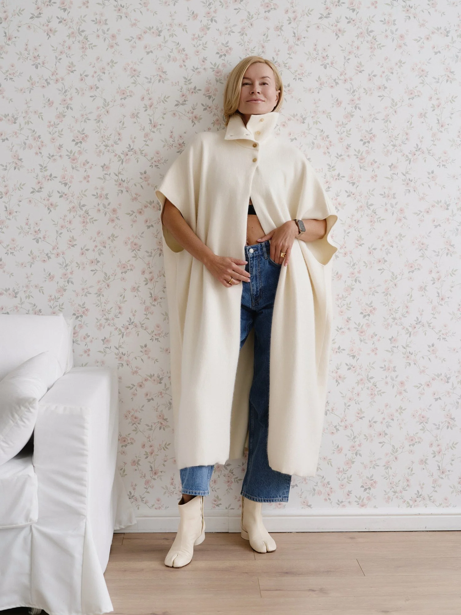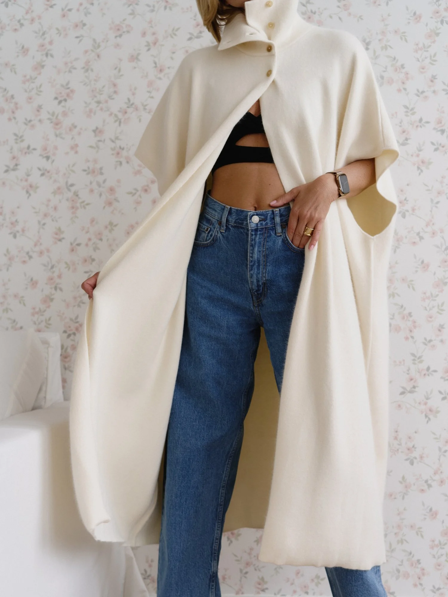 Рост модели 174 см , длина кейпа 122 см. Кейп подходит на размер 42-48