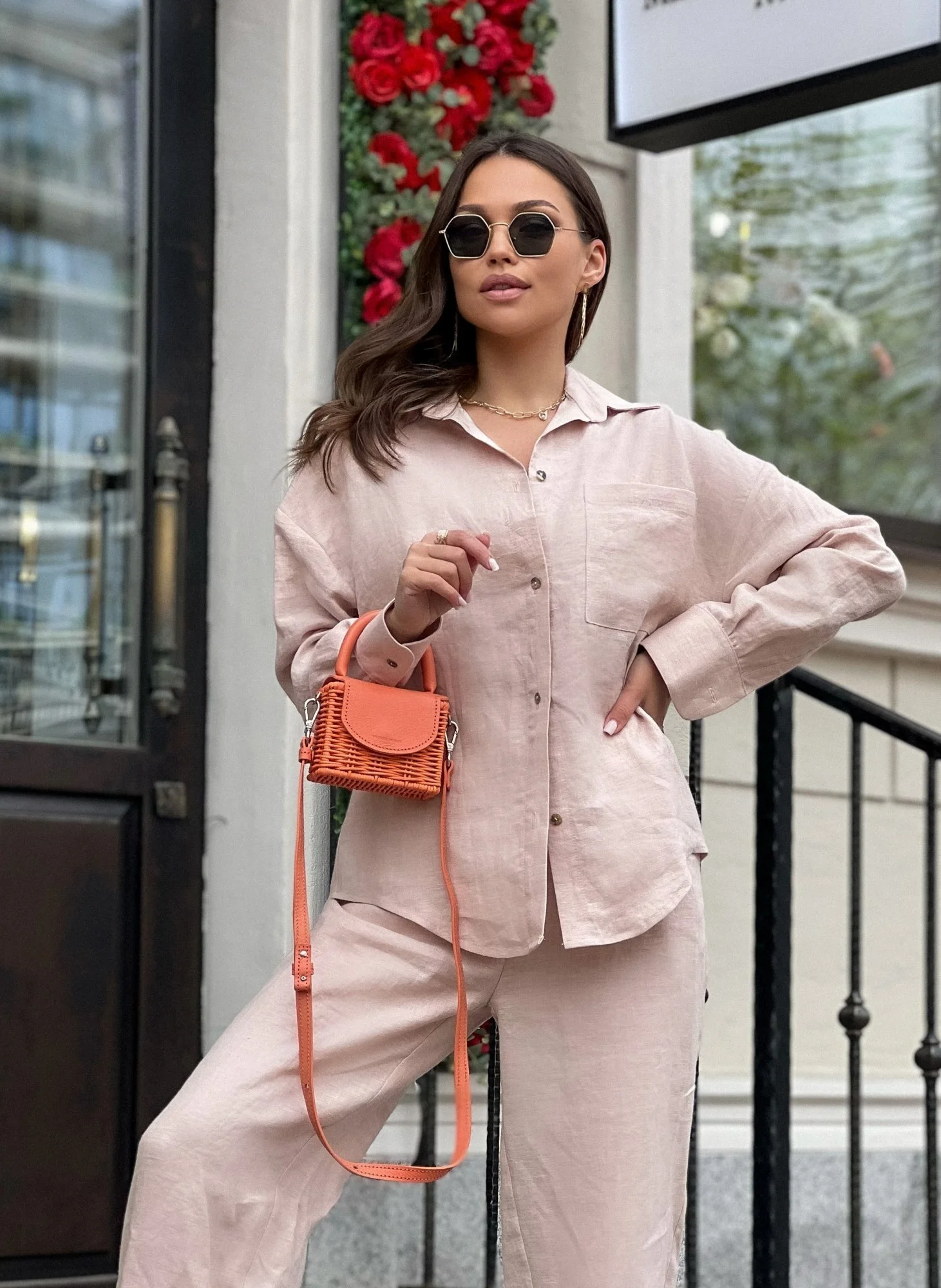 —Рубашка льняная цвет БЕЖЕВЫЙ