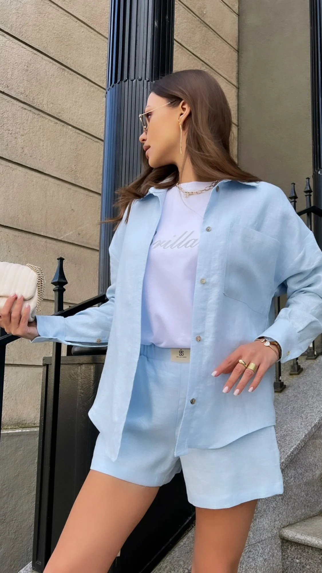 Шорты из льна цвет Голубой